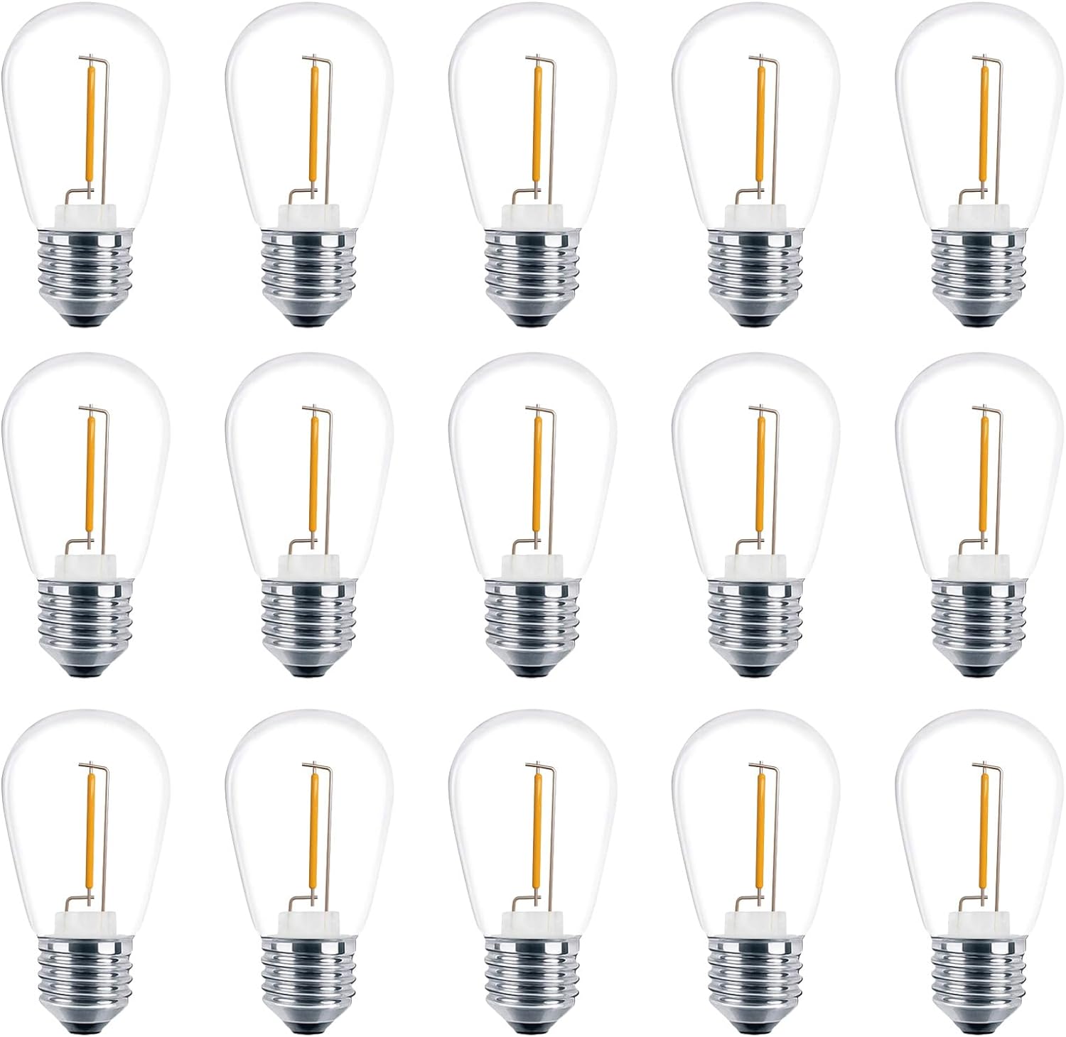 Meconard Shatterproof LED S14 Replacement Light Bulbs,E26 Medium Screw Base, Vintage Edison Bulbs Equivalent to 11 Watt, Fits for Commercial Outdoor Patio String Lights, 2200K Warm White, 15 Pack