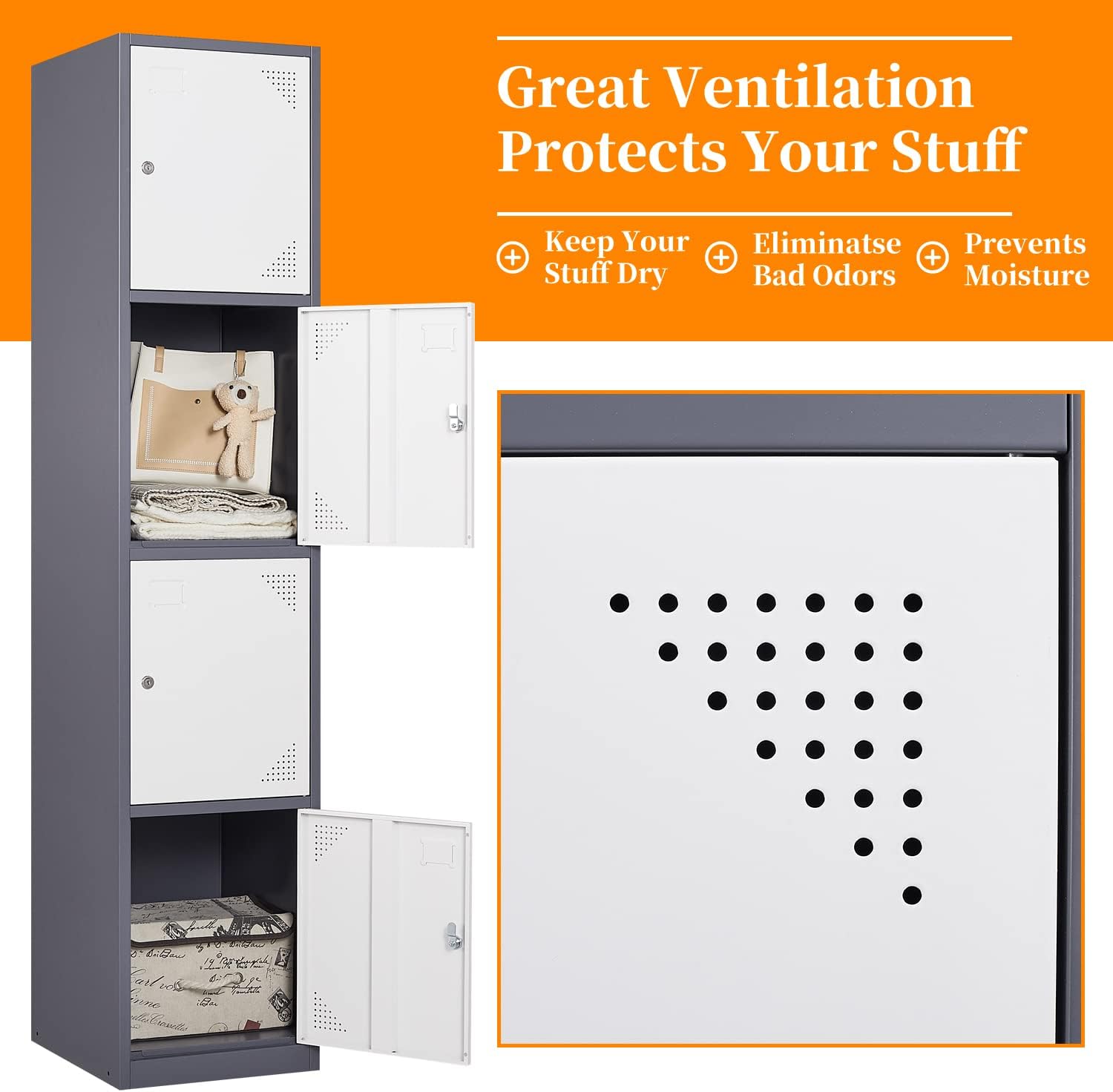 Metal Locker with 4 Doors, 71'' Lockers for Employees Steel Storage Locker, Lockable Locker Cabinet for School, Gym, Home Office and Garage(Grey White) (Rectangular)
