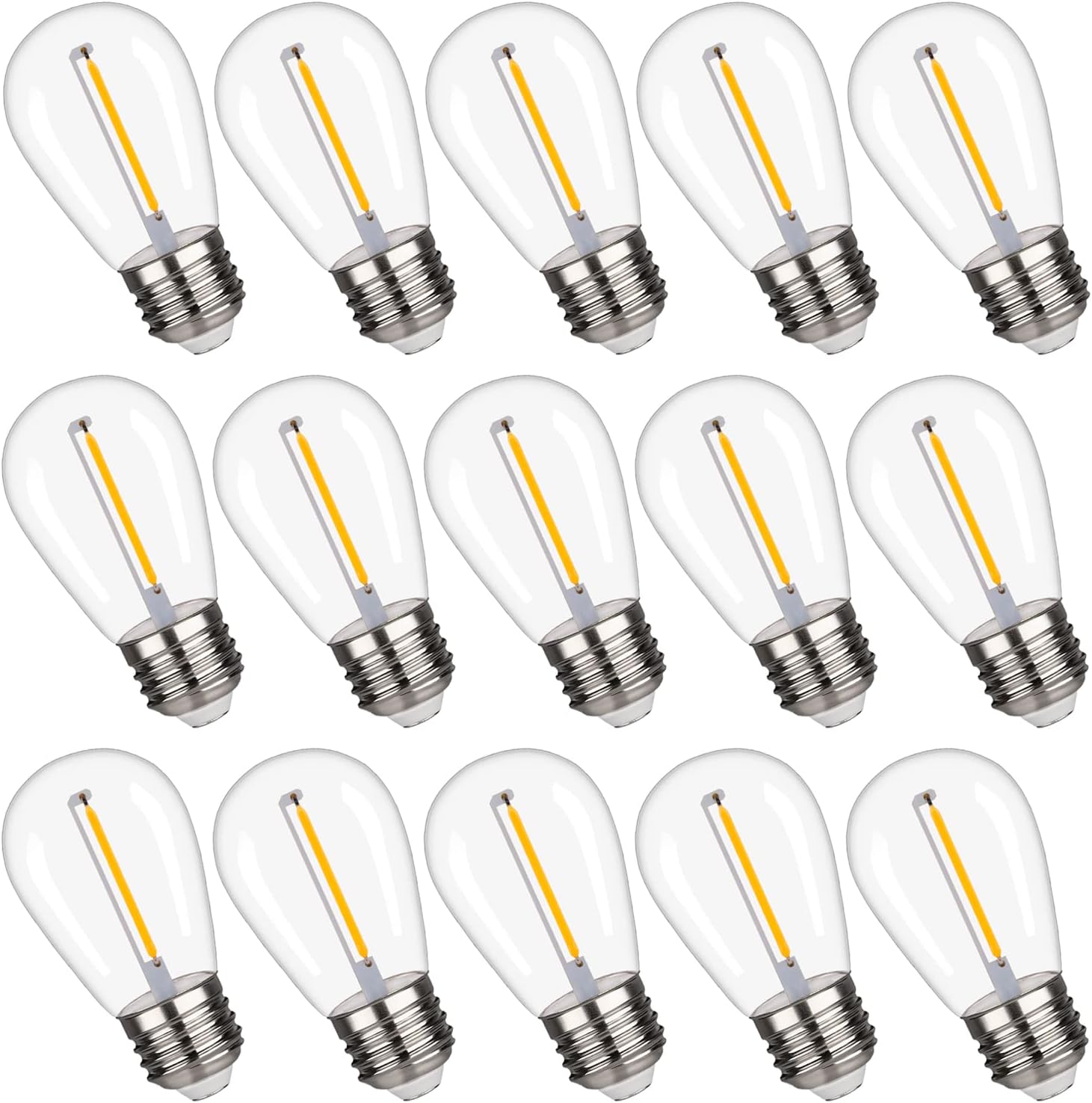 S14 Replacement LED Light Bulbs, Shatterproof & Waterproof 1W S14 LED Bulbs, Outdoor String Lights , E26 Base Patio Edison LED Light Bulbs, Warm White 2200K Plastic 70ML Non-Dimmable 15 Pack