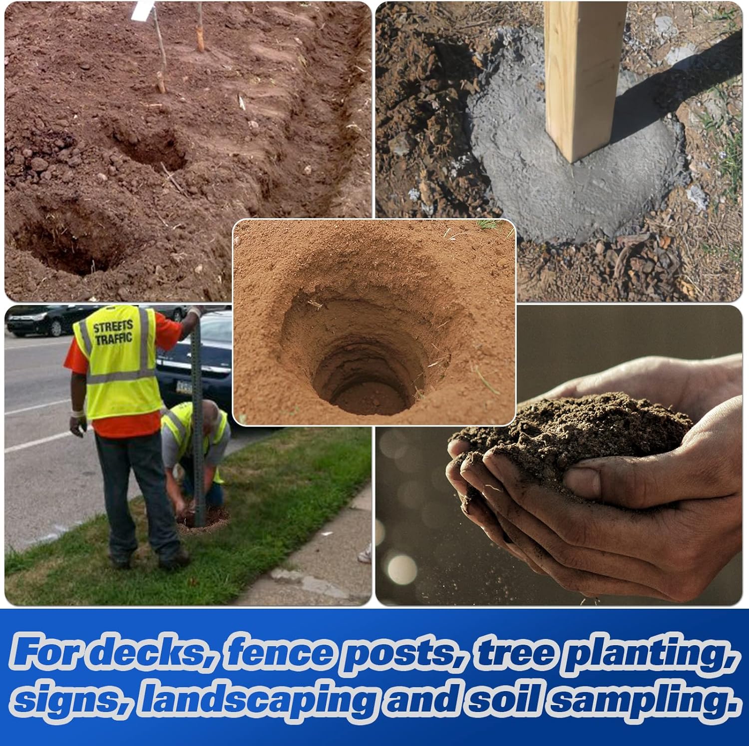 - Multipurpose - The auger digs and bores through holes for decks, fence posts, tree planting, signs, landscaping and soil sampling.