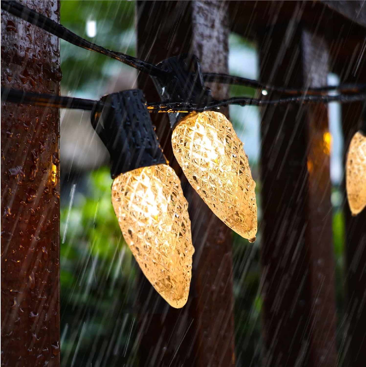 - 【UNIQUE DESIGN】Diamond faceted bulb design reflects a spectacular light. This C9 LED Bulb shell are made of weather resistant and break resistant acrylic resin.