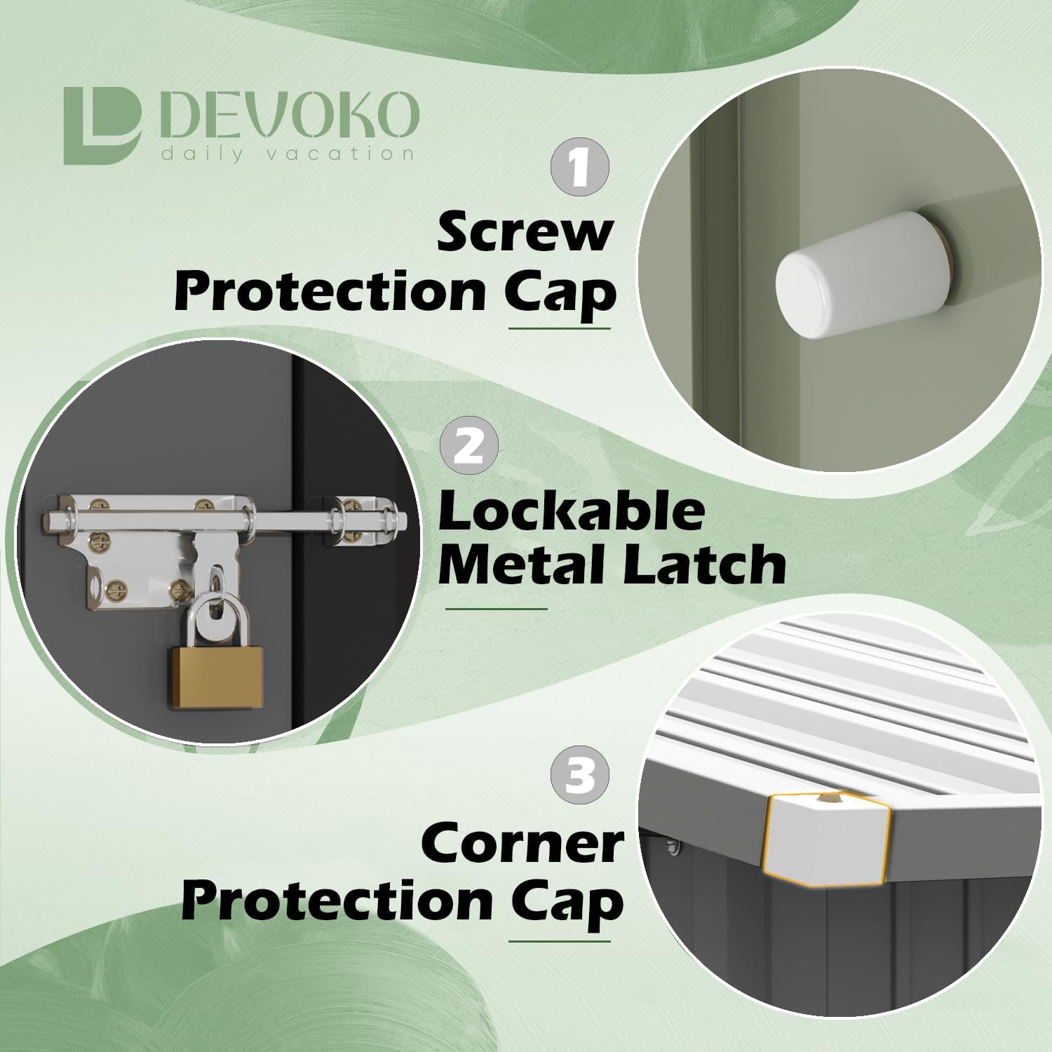 - [Security and Durability] The whole house is a steel frame structure, the metal garden storage shed adopts electro-galvanized steel process and paint treatment, which is suitable for various climates, without worrying about the metal rusting, the all-metal storage shed will not be deformed by the sun, and has excellent moisture-proof performance.