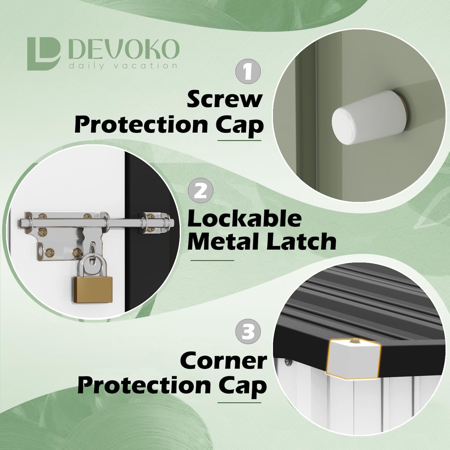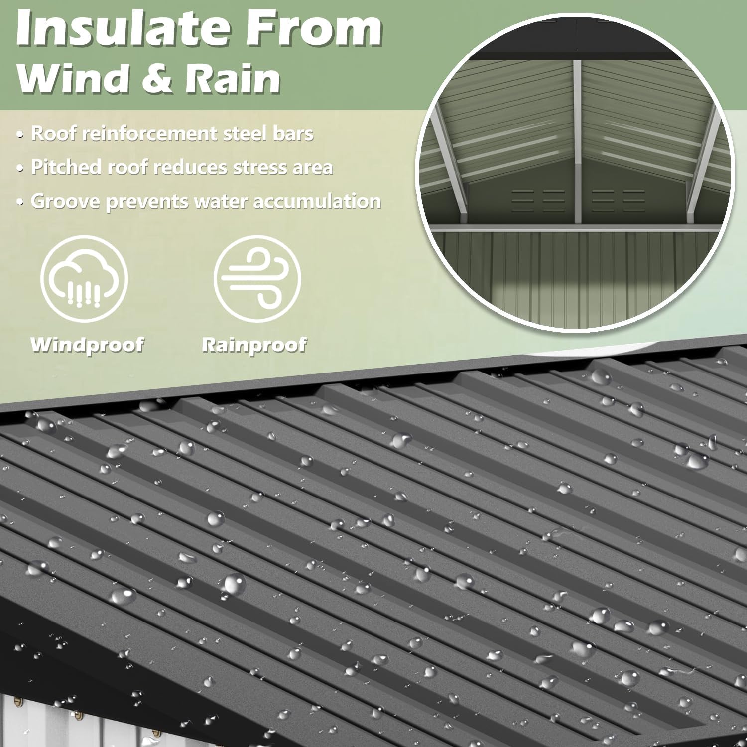 - [Security and Durability] 3 beams roofs stay strong in wind and snow. The metal garden storage shed adopts electro-galvanized steel process and paint treatment, which is suitable for various climates, without worrying about the metal rusting, the all-metal storage shed will not be deformed by the sun, and has excellent moisture-proof performance.