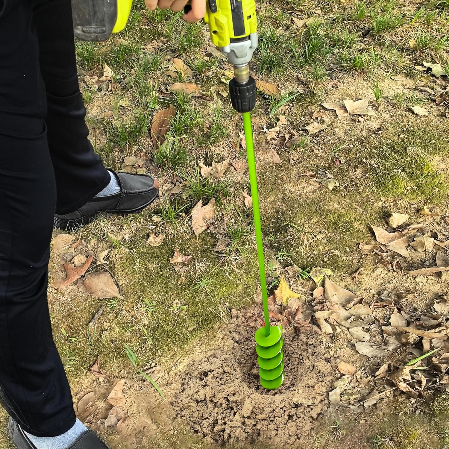 - 【Easily Use】Just insert the planting auger into the drill chuck, tighten and lock it, then hold with both hands, start digging. Reserve the drill transport the soil to edge, you will get the perfect holes you wanted. Suggest using 18V or greater cordless drill with adjustable drill chuck.