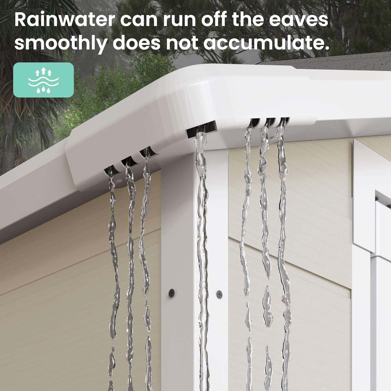- RECYCLABLE RESIN MATERIAL:Our storage shed is crafted with 12 MM premium polypropylene resin plastic, which is recyclable. Resin shed is corrosion-resistant, waterproof, rustproof and with UV protection for more than 8000 hours, less bending and puncturing, worry-free for use in all weather conditions. It can be used daily for five years without fading