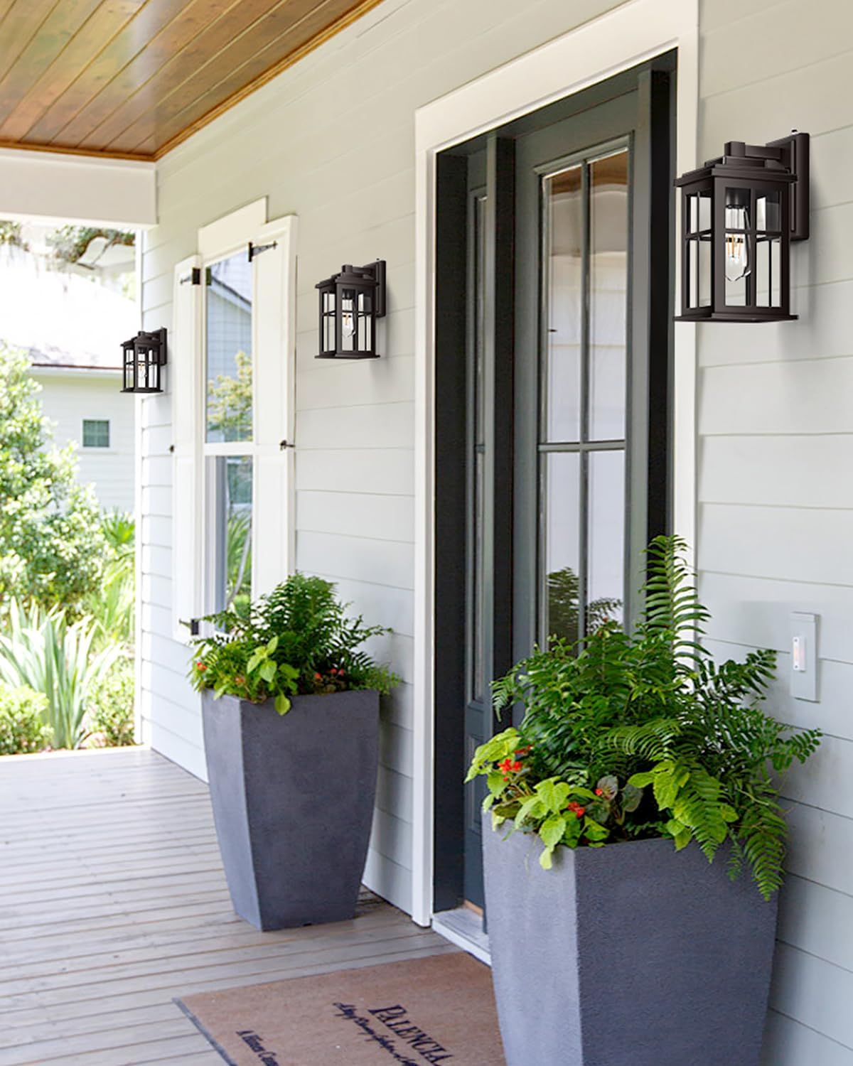 - 👍【Contemporary Design, Perfect for Outdoor Decor】Enhance your exterior with our outdoor lights for house featuring sleek lines and a stylish matte black finish. Its versatile design complements various decor styles, allowing your personal style to radiate. These outdoor lights for house are the ideal choice for illuminating your front door, garage, porch, or backyard, serving as both a welcoming and security light.
