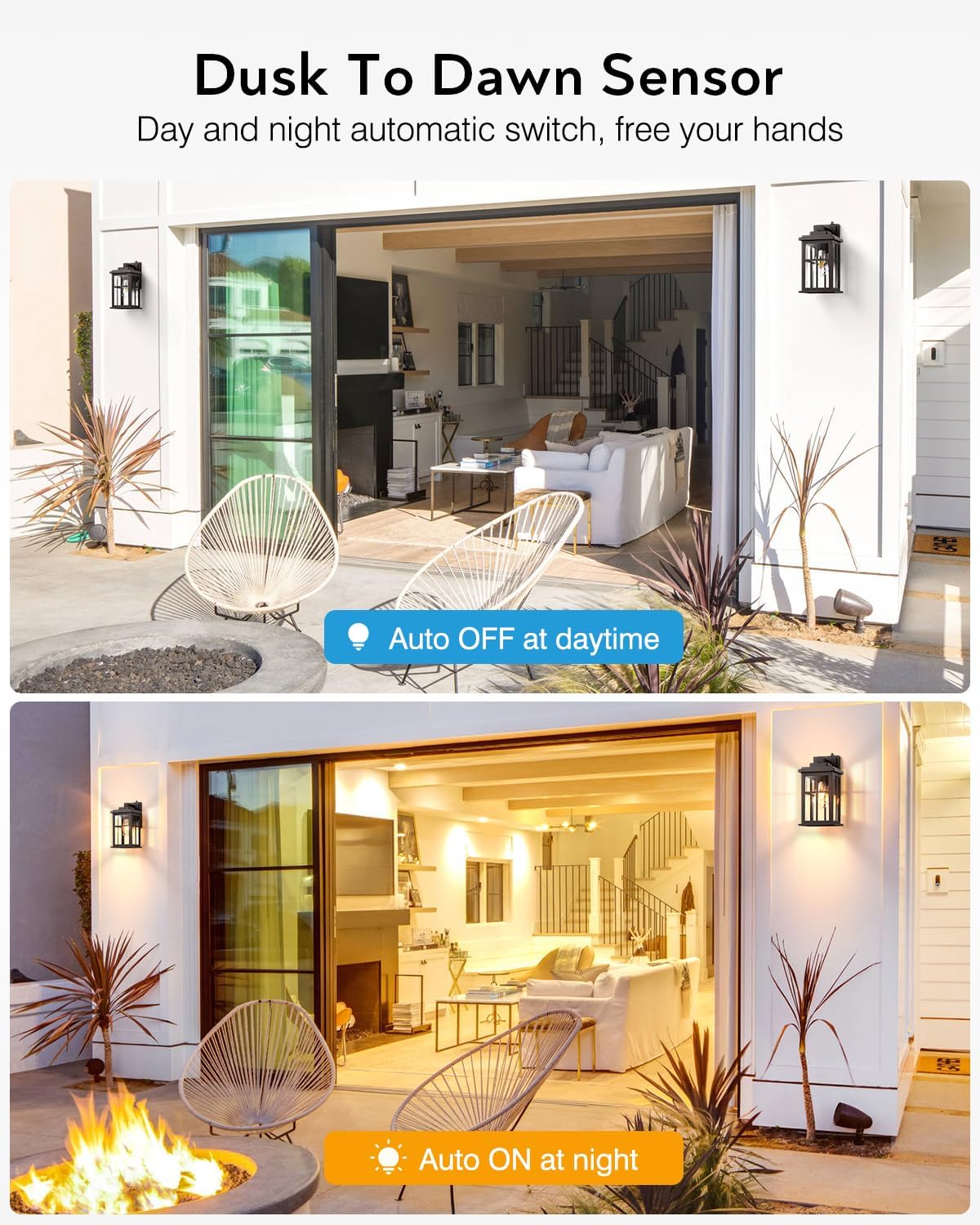 - 👍【Advanced Dusk to Dawn Sensor】Experience the smart functionality of our outdoor porch light, thanks to its advanced dusk to dawn sensor. Equipped with a high sensitivity photocell sensor, these dusk to dawn led outdoor light intelligently turn on at dusk and turn off at dawn, based on the surrounding brightness. Free yourself from the hassle of manual operation and enjoy energy savings, bringing you unparalleled convenience in your day-to-day life.