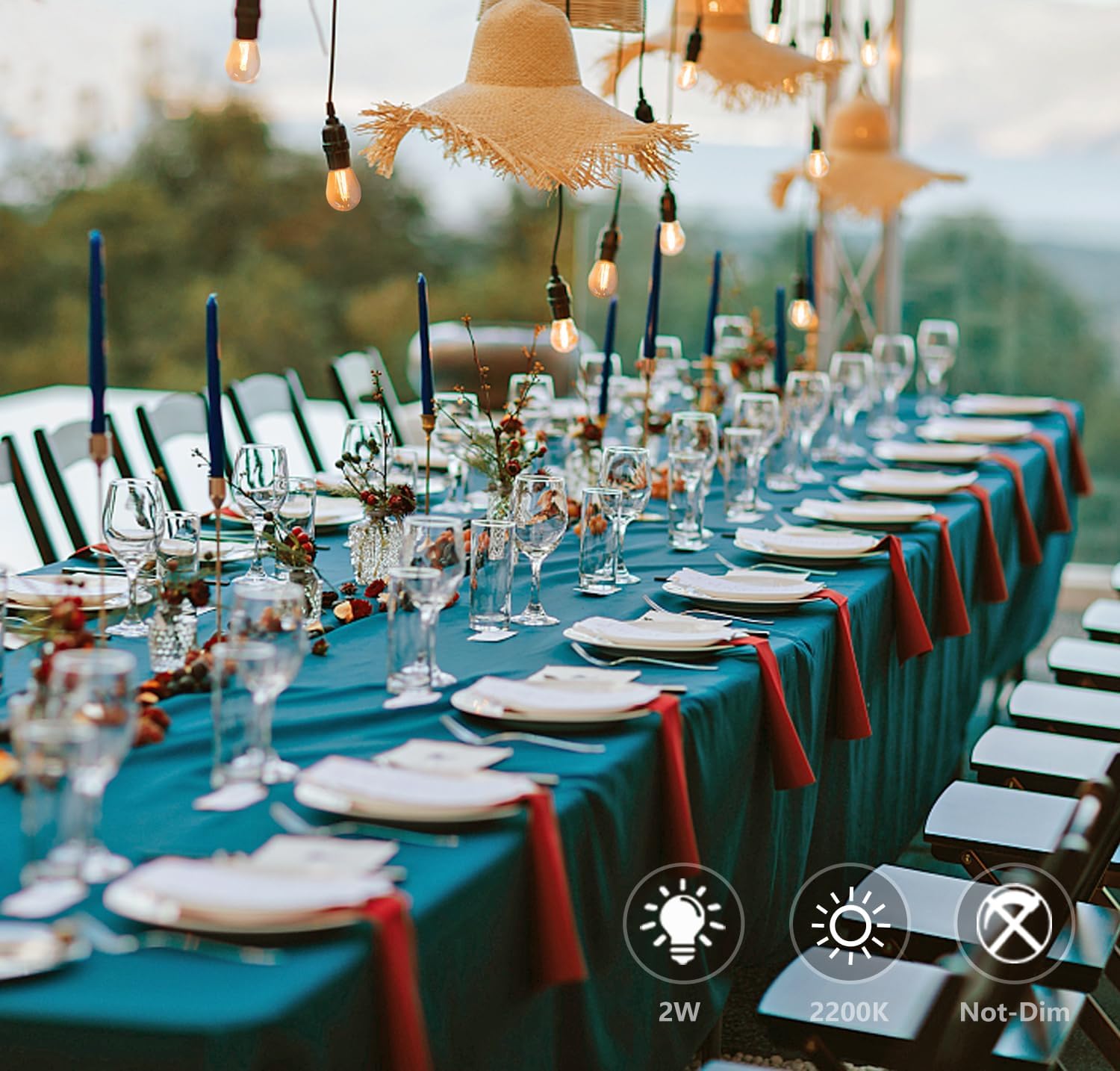 - 【USE OCCASIONS】Waterproof, Indoor and Outdoor can be used,suitable for courtyard, party, wedding, terrace, bar and restaurant. 2200k color temperature makes the occasion more warm and romantic.