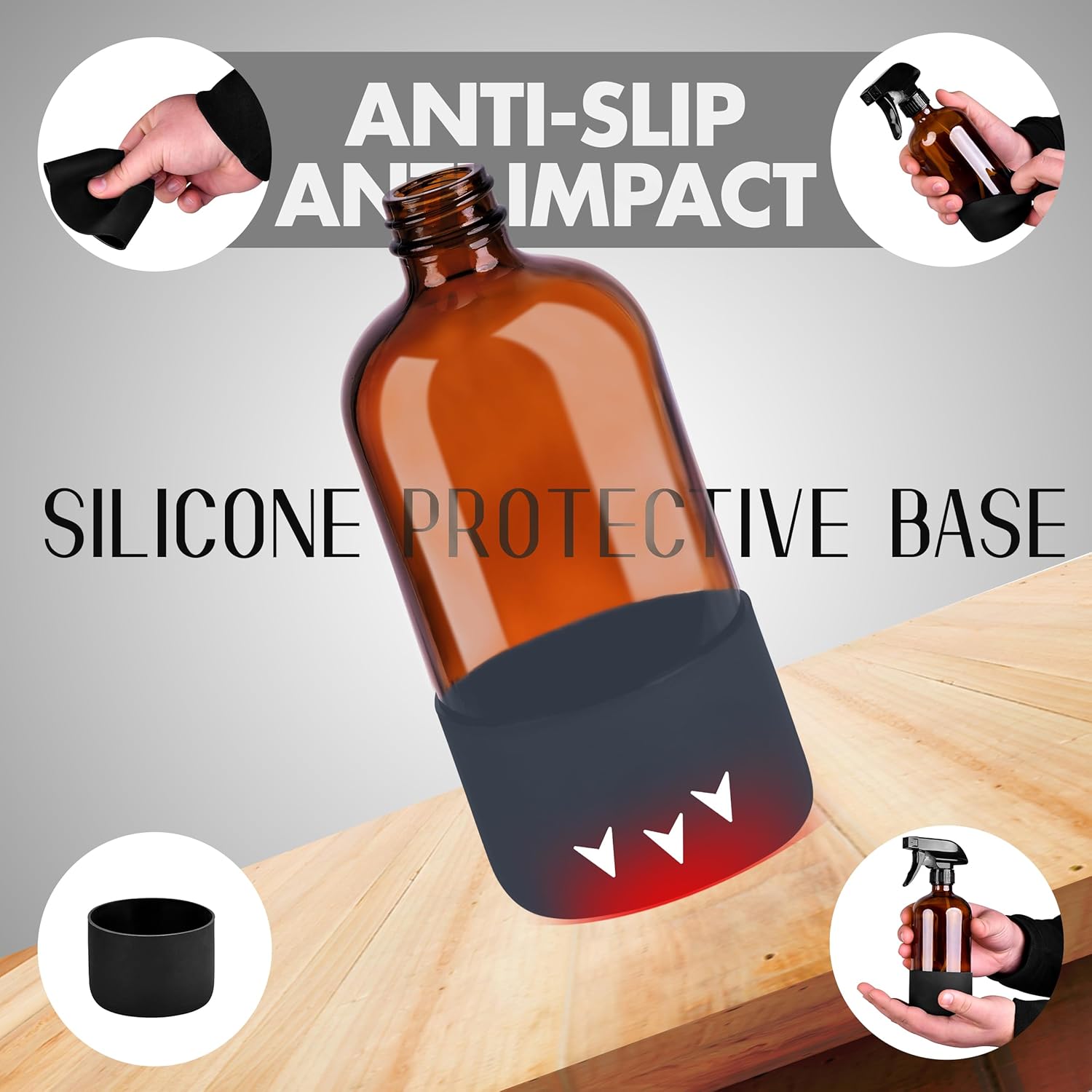 16oz Empty Glass Spray Bottle with Silicone Sleeve Protection - Refillable Containers for Cleaning Solutions, Essential Oils, Misting Plants - Including 2 Sprayers (Amber, 2 PACK)
