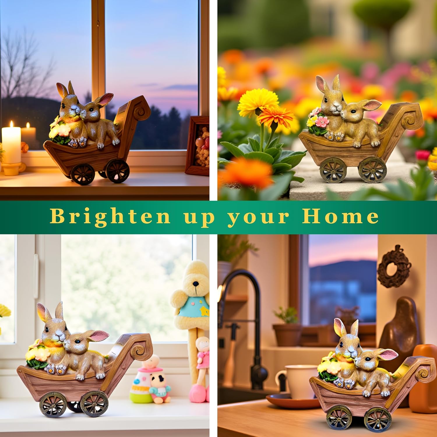 - Heartwarming Mother & Baby Design: Features an adorable mother and baby bunny in a charming cart, symbolizing family and nurturing love; this unique solar statue adds a whimsical, emotional touch to any garden, patio, or lawn