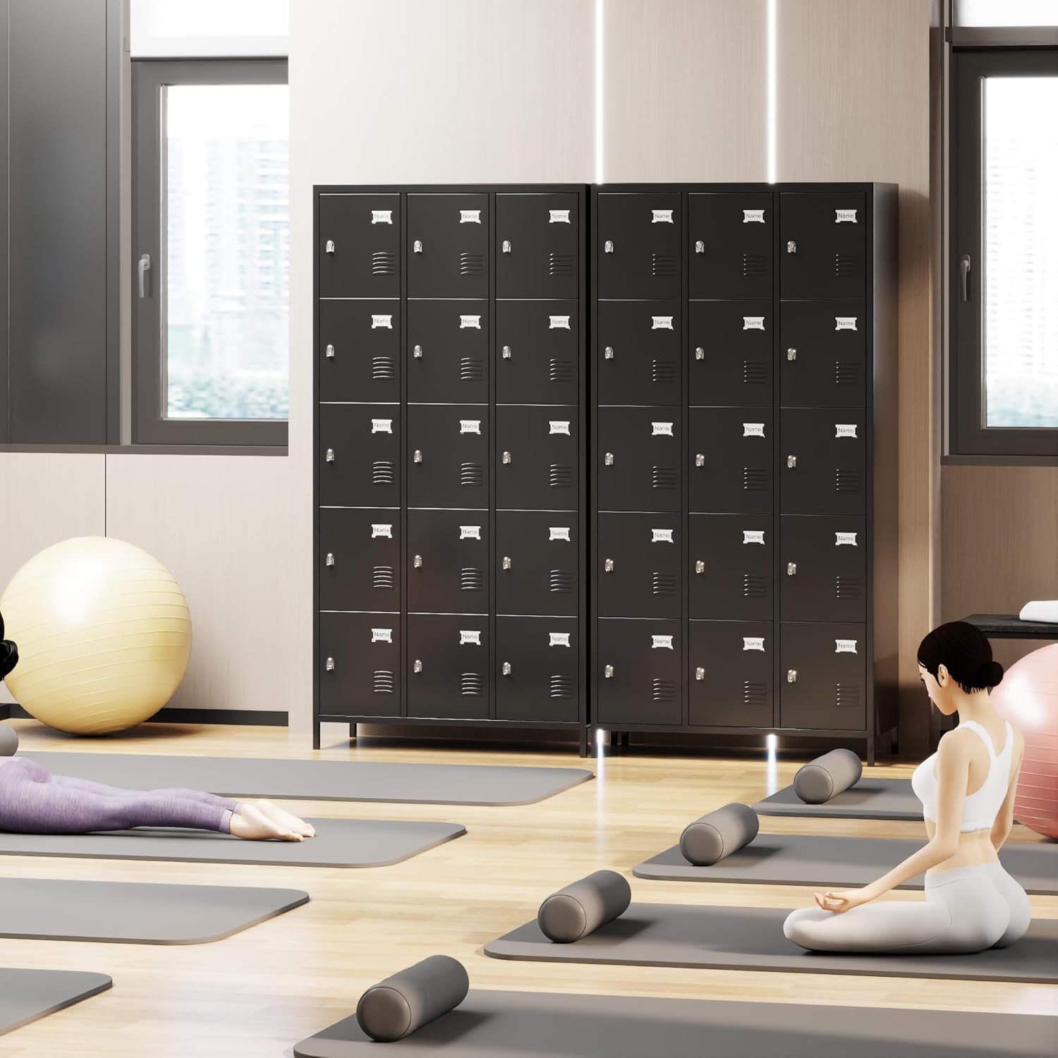 Aobabo 15 Doors Metal Storage Locker for Employees, Locker with Lock and Metal Leg for School Office Gym, Industrial Steel Storage, Black, Assembly Required
