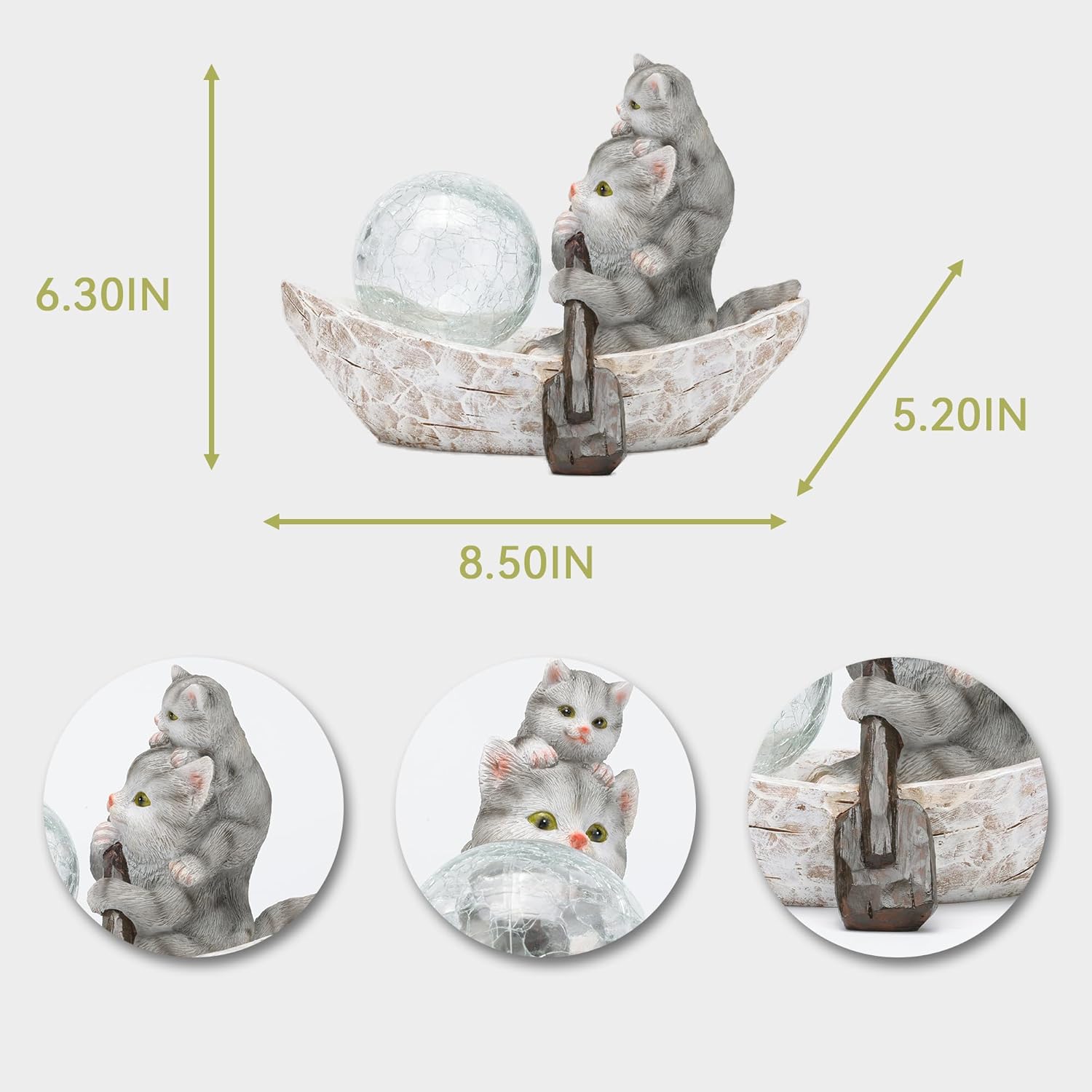Garden Statue of Cat,Garden Decor Cat Figurine,Cats Outdoor Statue,Solar Decor for Patio,Balcony,Yard,Lawn Ornament