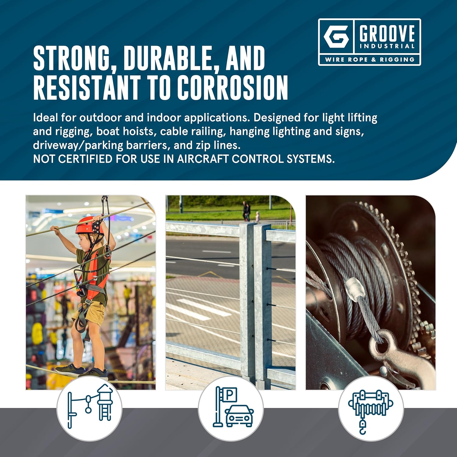 - VERSATILE LENGTH OPTIONS: Groove Industrial wire rope products are offered in various standard lengths for all your project needs. Select your length and we take care of the rest.