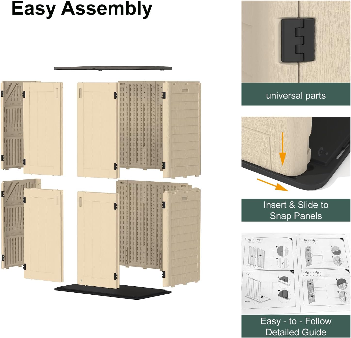 - Secure & Stylish Outdoor Solution: Features a lockable (padlock not included) double-door design for added security and a sleek khaki finish that blends naturally with outdoor surroundings. Perfect as a waterproof outdoor closet for tools, bikes, or holiday decorations.