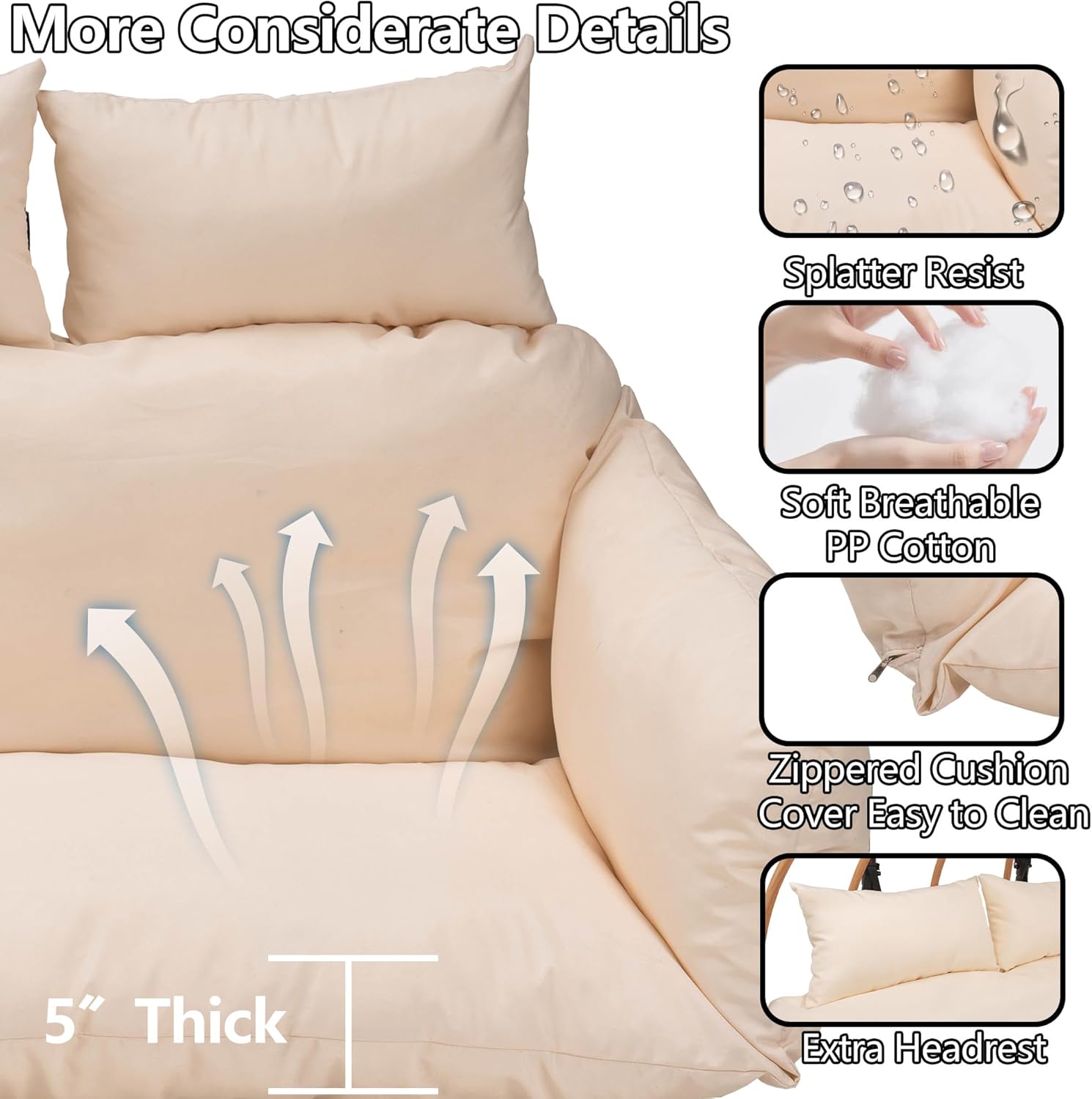 - Cozy Outdoor Seating: The double egg swing chair with stand, a 2 person patio swing chair, has a large seat and metal backrest. it offers great spine support, like a hammock swing for 2, very comfy