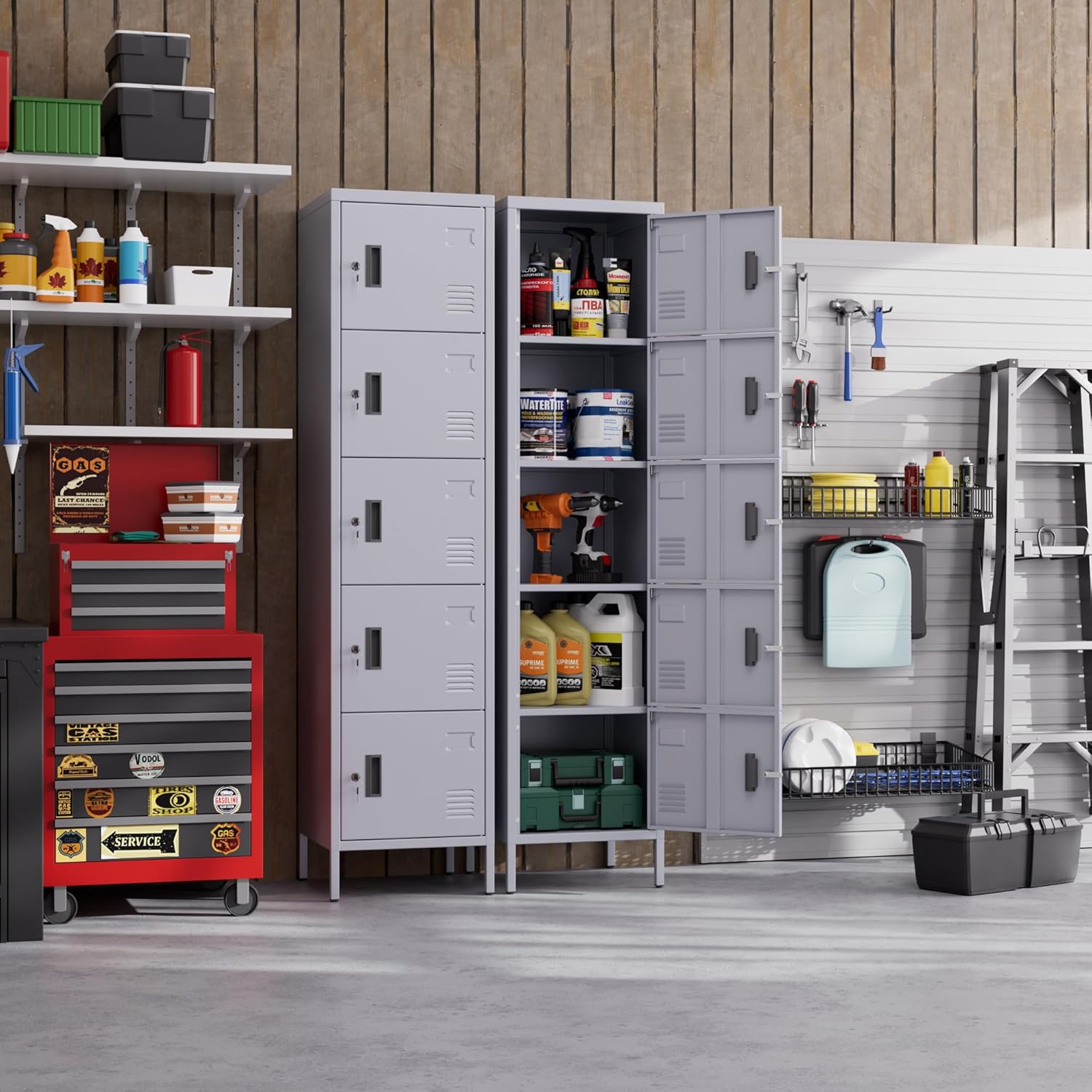 - 【Sturdy and Higher Quality】100% steel material is made into metal storage cabinets,powder coating process makes storage cabinet Sturdy and higher quality.