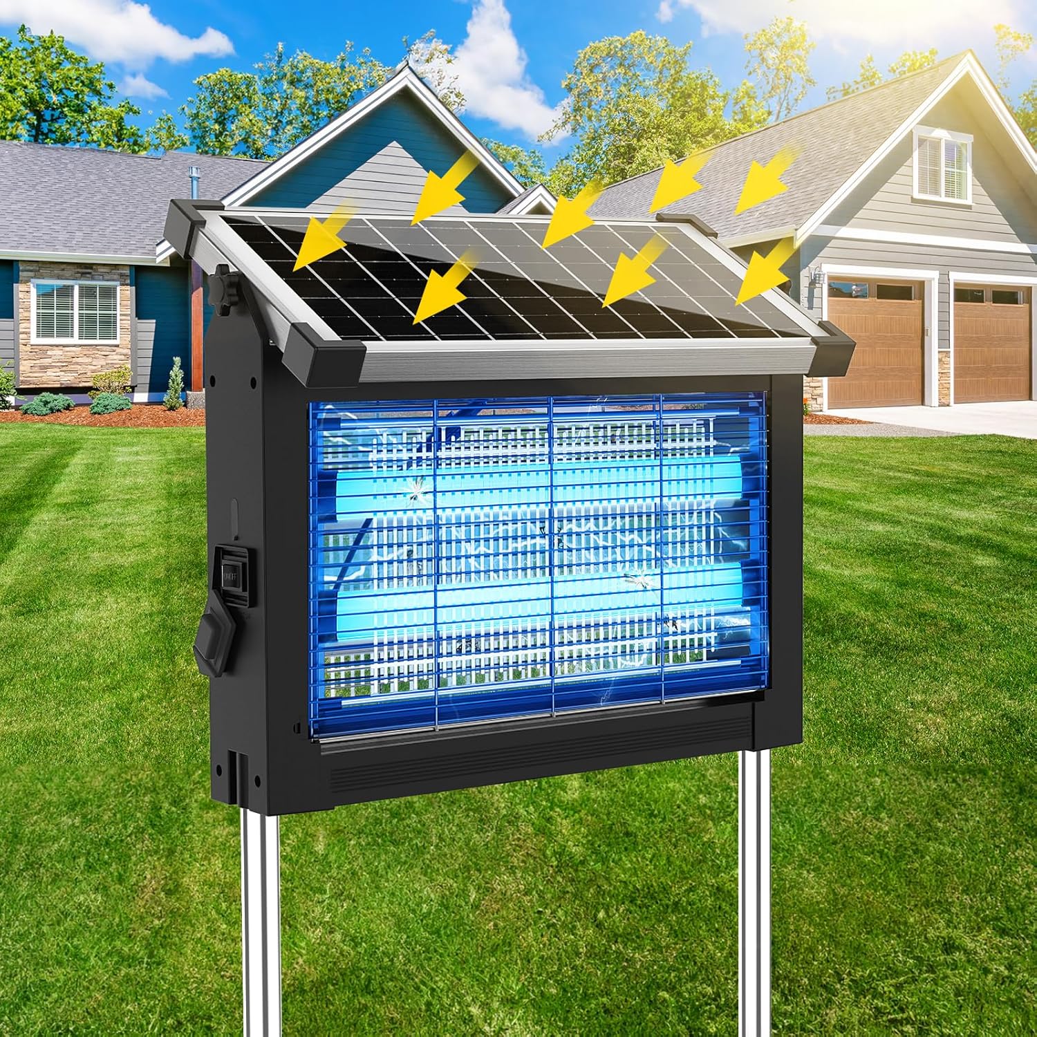 - [4500V High Voltage Power Grid] Increases mosquito catching efficiency by 65%; the 4500V power grid effectively eliminates pests. IP66 waterproof rating, rain and splashproof, perfect for patios and pools.