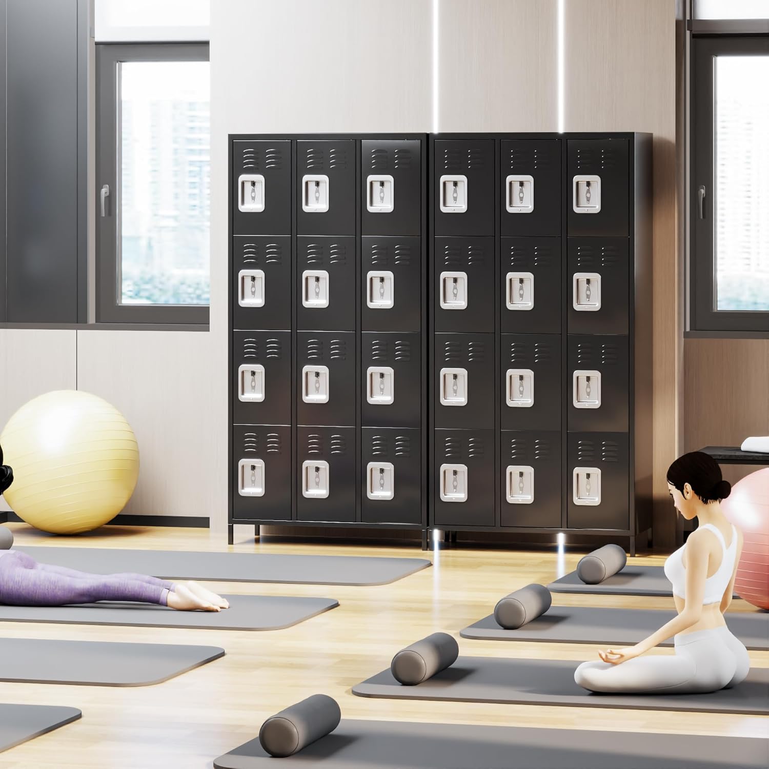 Aobabo 12 Doors Metal Storage Locker for Employees, Storage Locker with 12 Hooks for Garage School Office Gym, Black, Assembly Required